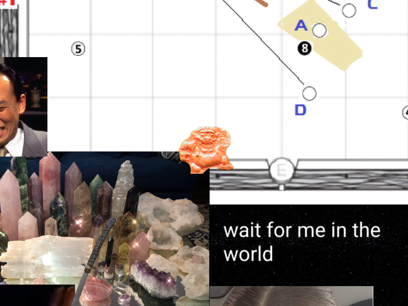 place photos, gifs, and text to create a little world for a character to walk around in!